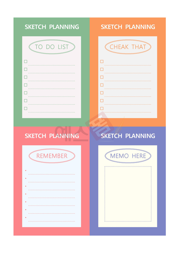 간단하게 할 일 목록과 메모를 기록하는 양식부터 구체적인 실행계획까지 기재할 수 있는 양식까지 다양하게 준비되어 있으니 나의 업무처리 방식에 맞는 자료를 골라 사용해보세요!