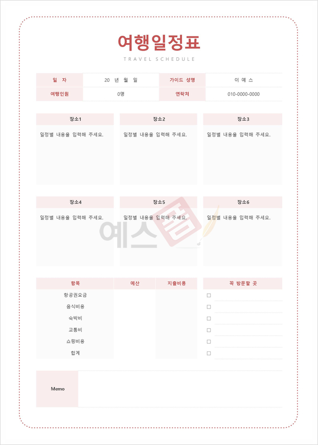 여행일정표 양식