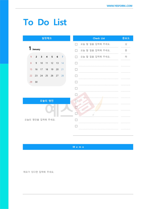 오늘은 예스폼에서 하루하루가 바쁜 여러분들에게 나침반이 되어줄 일정관리 양식을 준비해보았습니다.