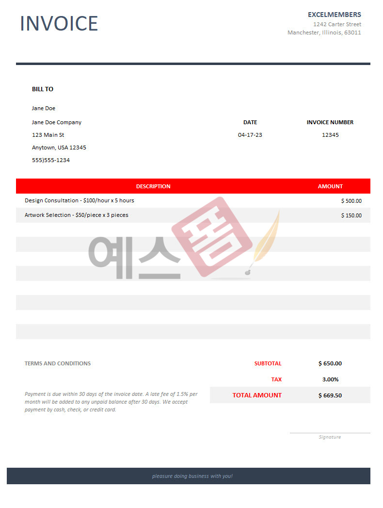 회사에서 사용하는 특정 Invoice 양식이 정해져 있으면 해당 양식에 맞춰서 작성하면 되지만, 따로 정해진 양식이 없다면 아래 다양한 Invoice 양식을 적절히 편집해서 사용하면 된다.